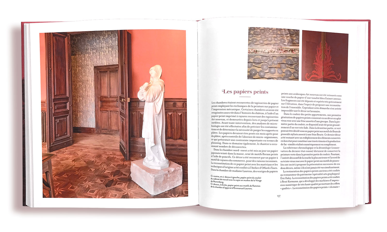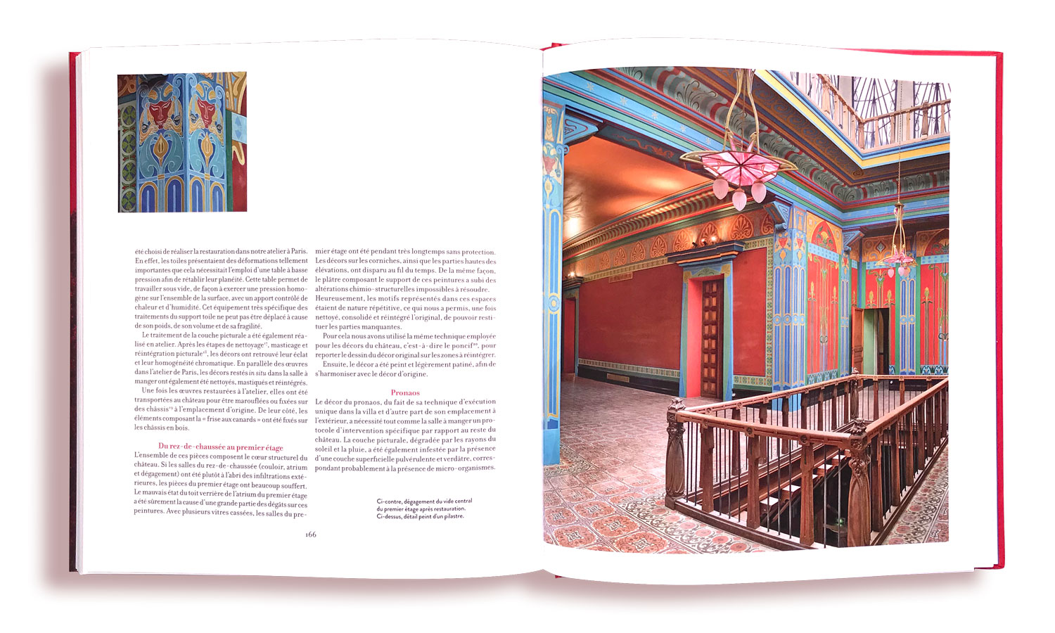 La sortie du livre accompagne la réouverture du Chateau Laurens, palais entièrement conçu par son richissime propriétaire puis abandonné pendant 30 ans. Il a fallu 16 ans pour que ce joyaux étonnant soit restauré, des peintures murales aux vitraux, des poignées de portes aux carrelages, des papiers peints aux colonnes orientales et aux mosaïques.