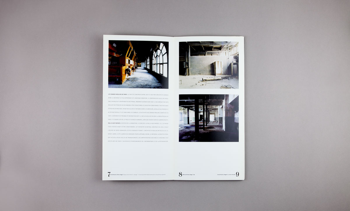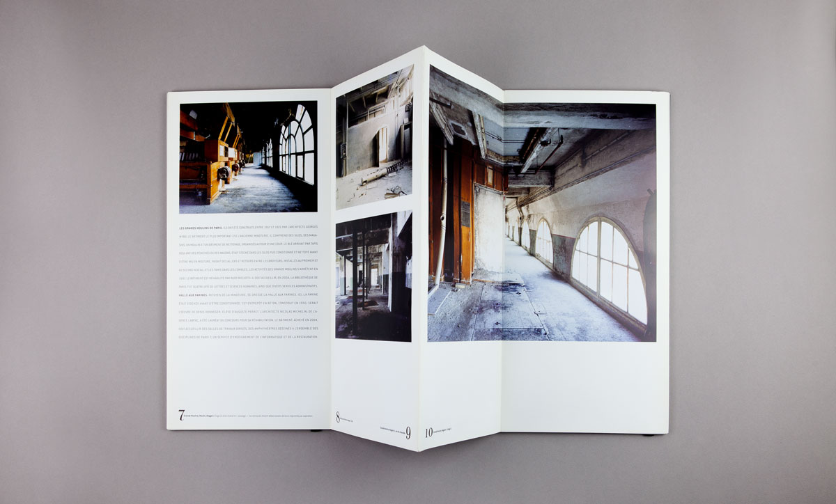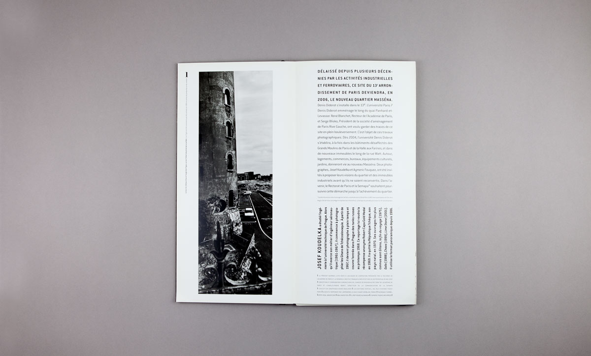 Cette série de livres a été édité à l’occasion de la rénovation et transformation du quartier des Grands Moulins de Paris pour créer le nouveau quartier Massena. C’est le désir de garder une trace de ce site en plein bouleversement qui a motivé la commande de reportages photographiques. Il était prévu de faire travailler différents photographes jusqu’à l’achèvement des travaux mais la collection ne comportera finalement que deux tomes.