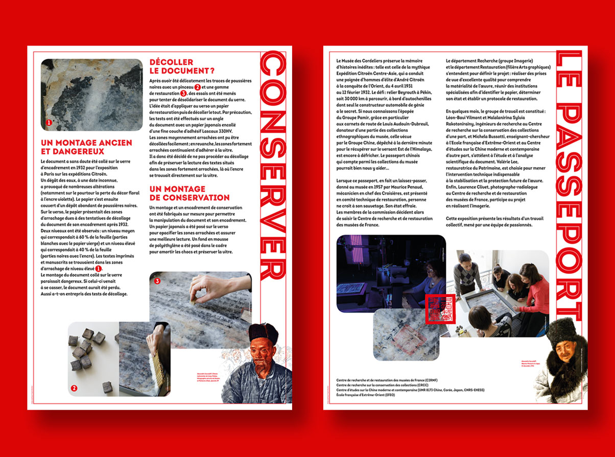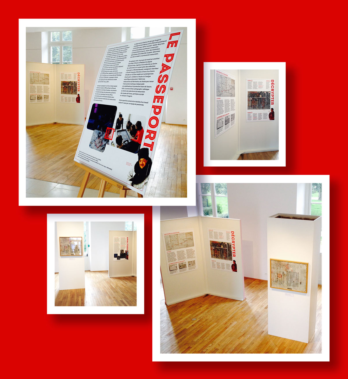 projet Conception graphique et réalisation des panneaux de l’exposition au Musée des Cordeliers de Saint-Jean d’Angély consacrée à l’étude et à la restauration d’un passeport chinois
